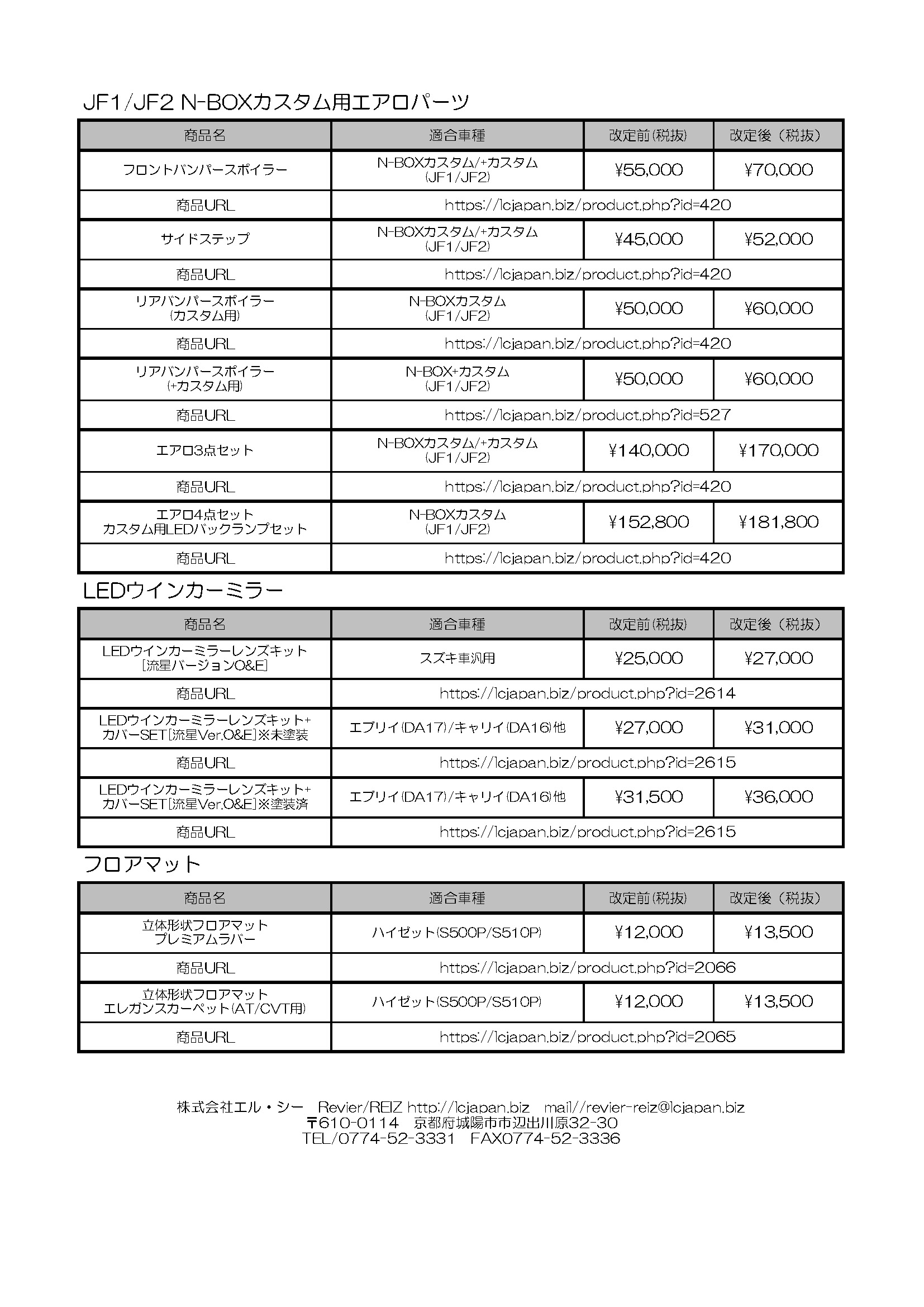 価格改定のご案内