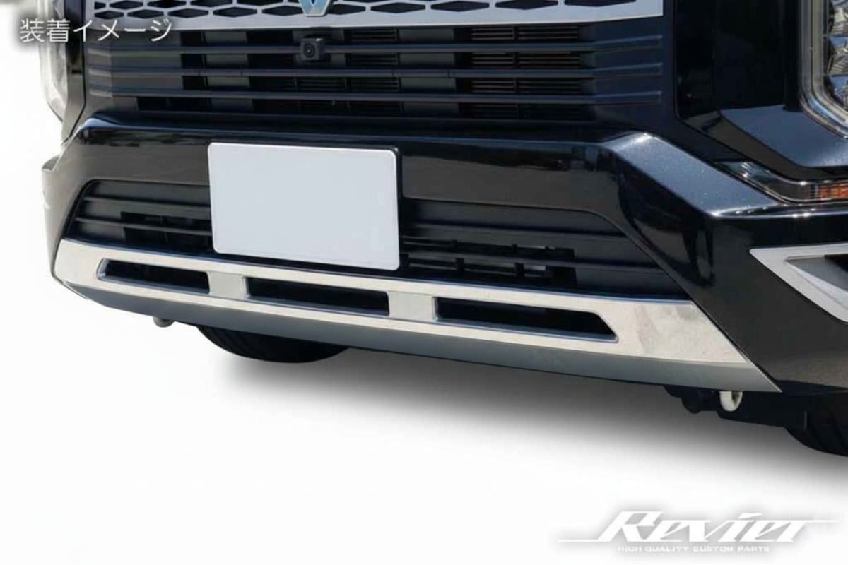 CV1W デリカD:5 (2019年2月~2025年12月) フロントバンパーリップカバー 1ピース 鏡面仕上げ/チッピングブラック仕上げ ステンレス製