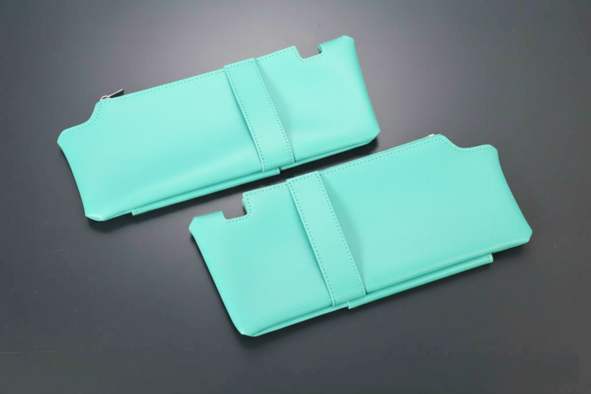 小物入れやポケットティッシュ入れを備えたサンバイザーカバー。