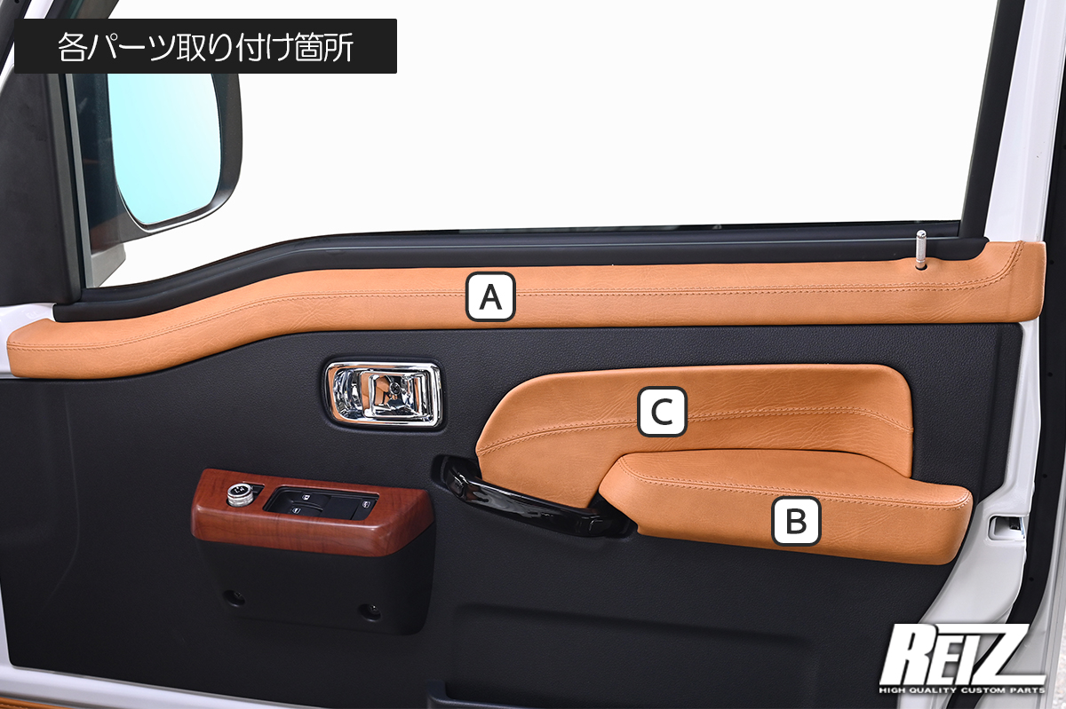 ウィンドウ周りのAと肘置きのB、ドアトリム中央のC、フルセットA+B+Cの4パターンを設定。
