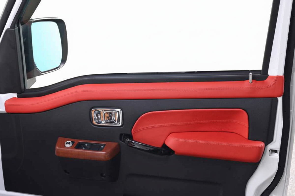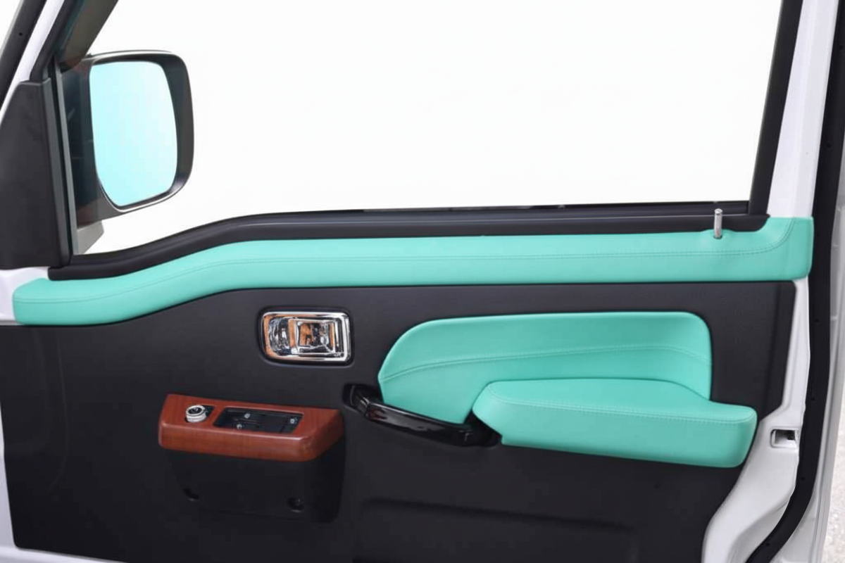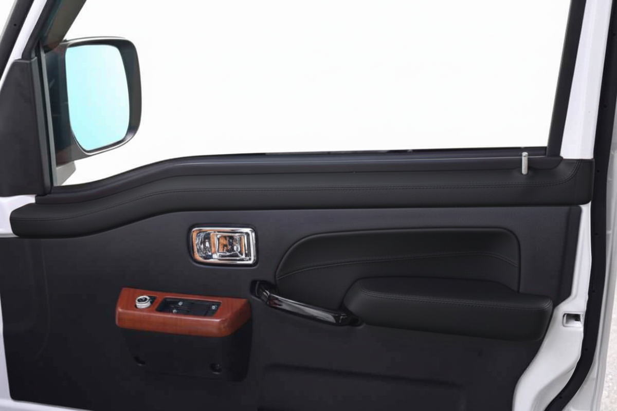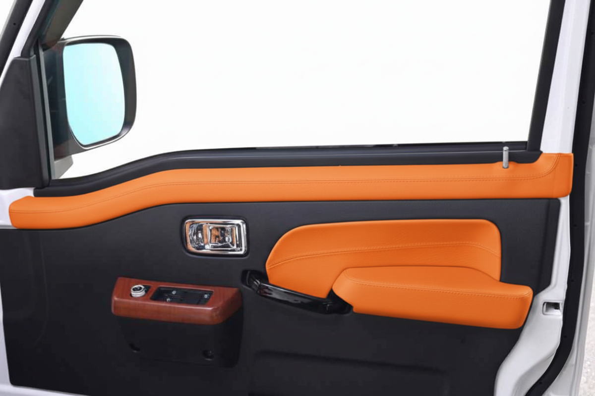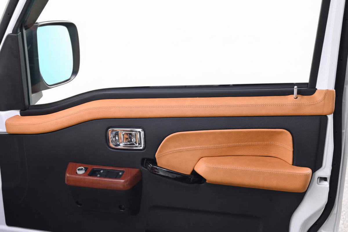 ドアトリム材(ABS製)にレザーを張り込んだ車種専用ドアトリム。