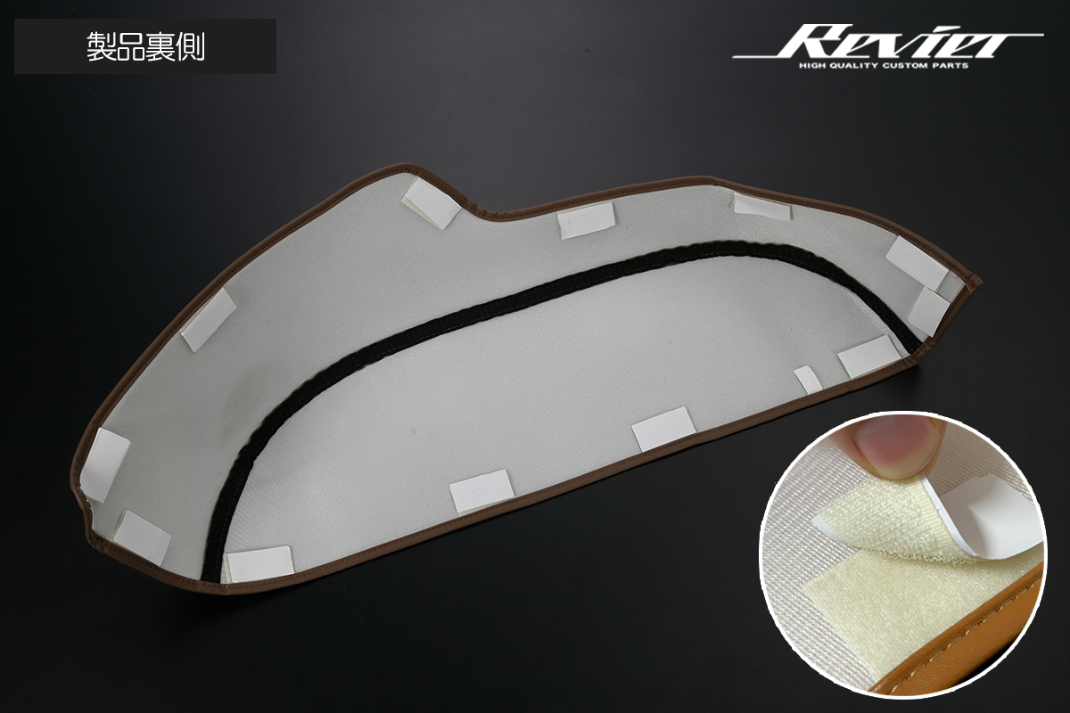 製品の裏側に装着済みのマジックテープを車体側に貼り付け装着。
