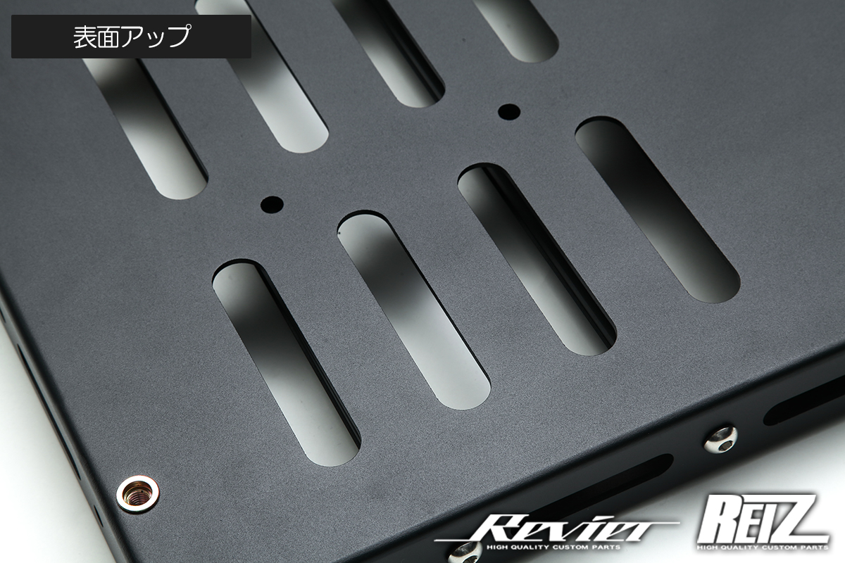 表面には梨地のブラック塗装を施しタフな印象を付与します。