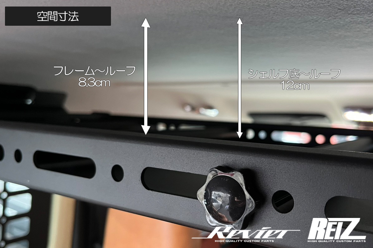 リアルーフ上部に取り付ける車種専用設計のルーフシェルフ。