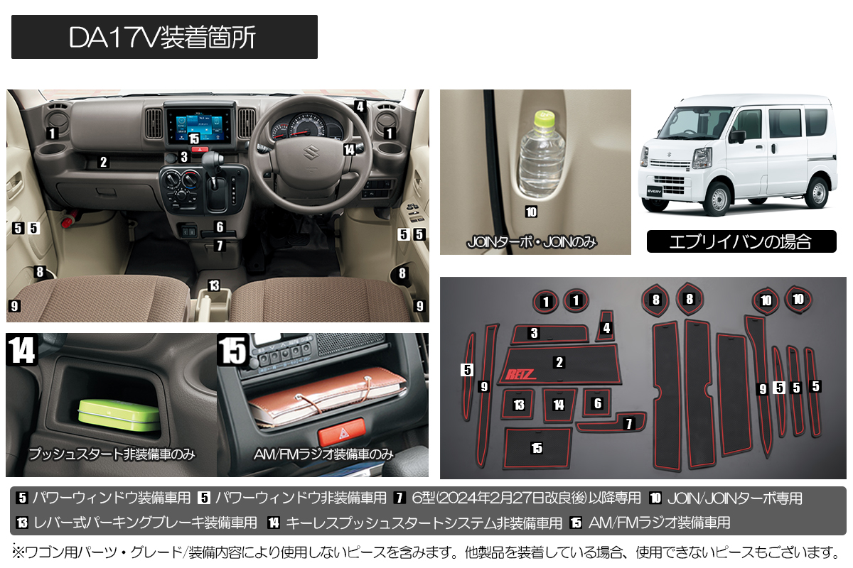 DA17V/DA17W エブリイ インテリアラバーマット 23ピース バン・ワゴン兼用 2色設定