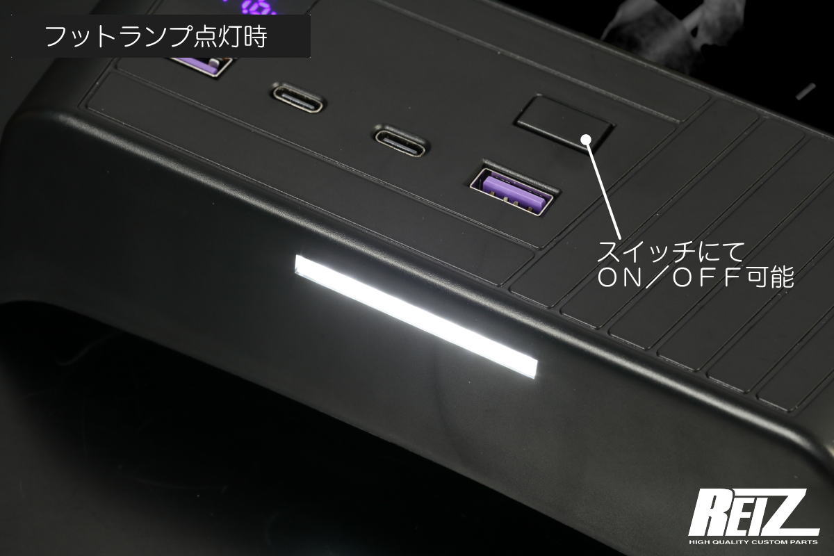 本体下部には足元をやさしいホワイト発光で照らし出すフットランプを装備。