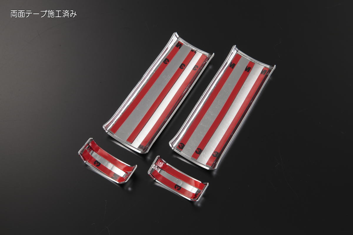 | セット内容 | ・本体左右分(計4ピース)両面テープ施工済み ※ハイエース4ドア車/ポルテ/スペイド等の片側販売不可となります。 |