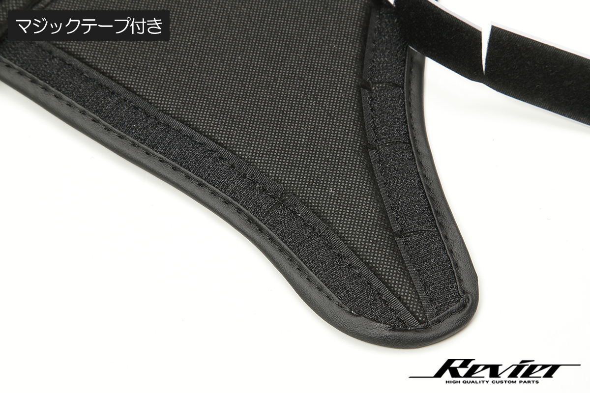 製品の裏側に装着済みのマジックテープを車体側に貼り付け装着。